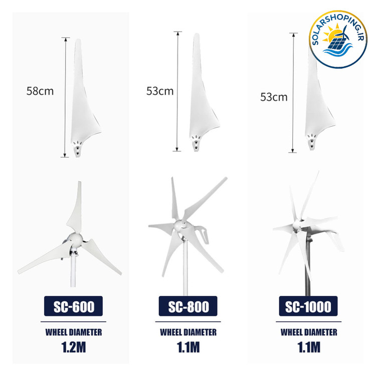 ژنراتور بادی، ژنراتور توربین بادی ۱۰۰۰ وات، توربینژنراتور بادی افقی ۶ پره انرژی همراهکنترلکنندهشارژ MPPT، توربین بادی کوچک کمصدا در دو ولتاژ۱۲ ولت ۲۴ ولت خانگی برای مصارف دریایی، RV، خانگی، توربین ژنراتور بادی