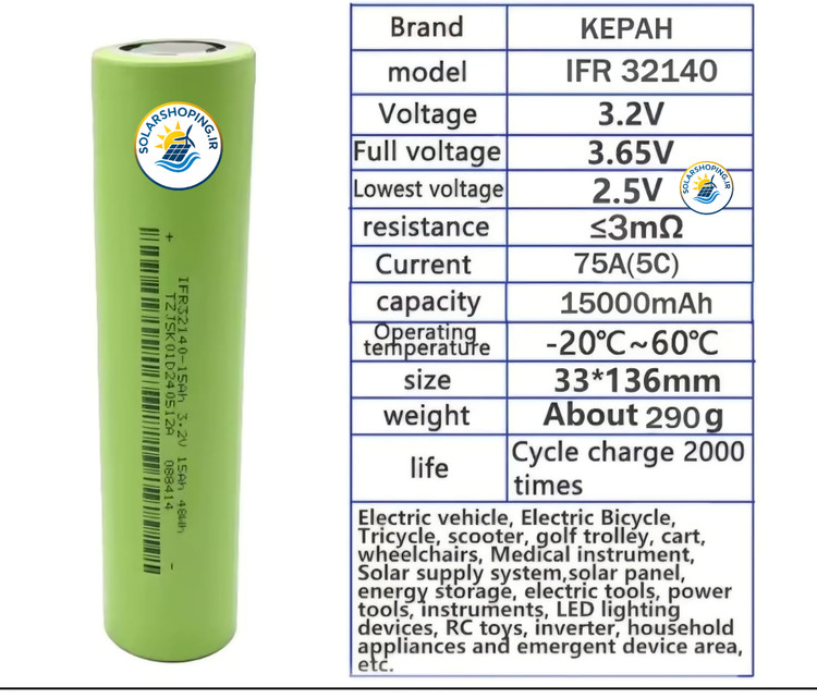 مشخصات فنی سل باتری لیتیوم فسفات آهن 32140