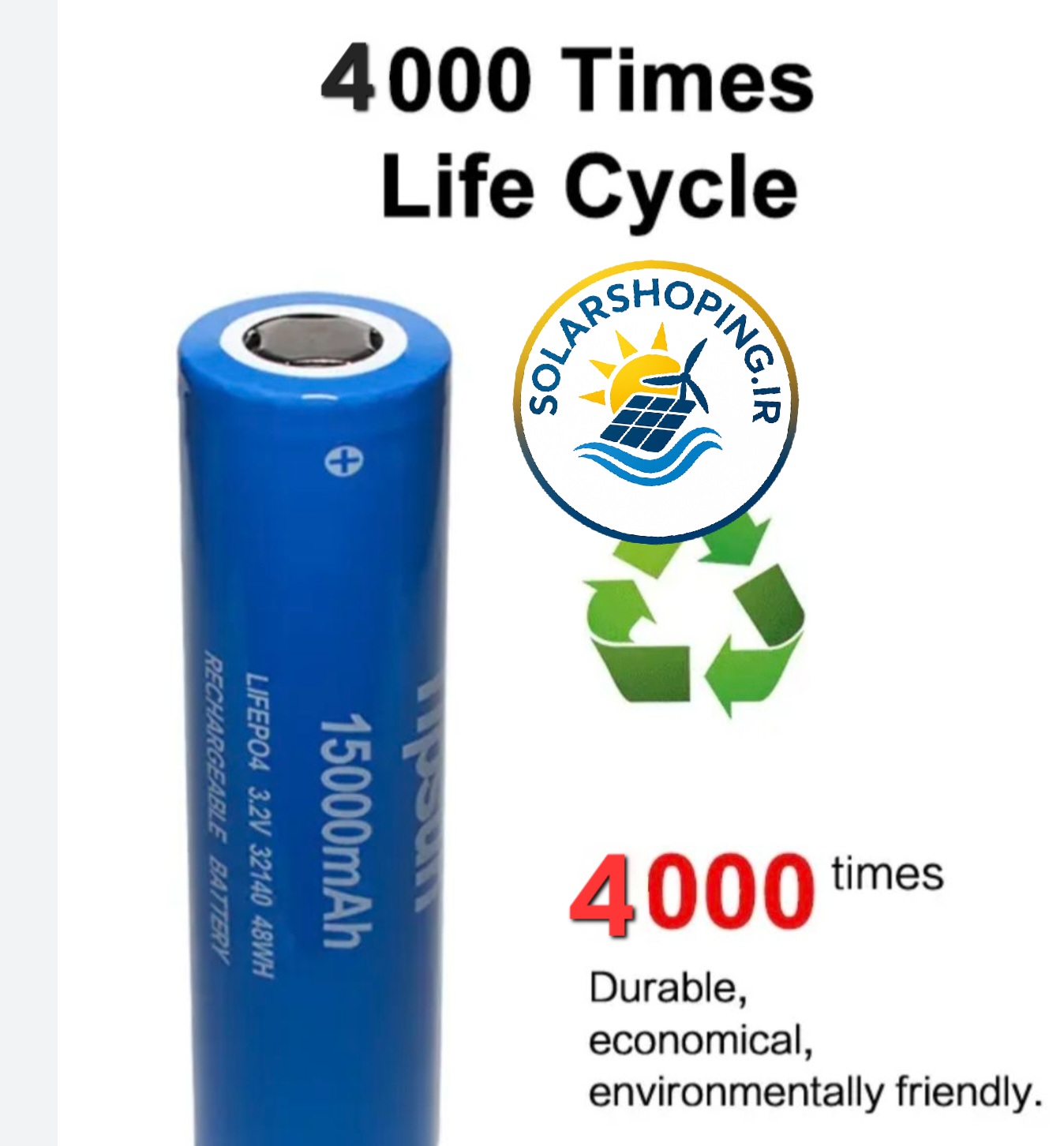 بیش از ۴۰۰۰ سیکل شارژ و دشارژ بدون افت محسوس ظرفیت، این سل را به گزینهای اقتصادی در بلندمدت تبدیل میکند.
